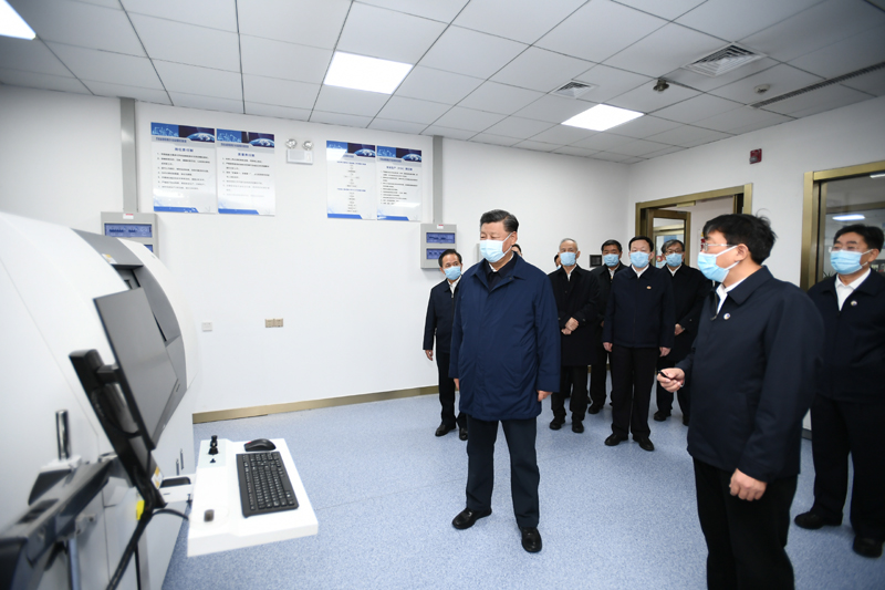 10月22日下午,中共中央總書記、國(guó)家主席、中央軍委主席習(xí)近平在山東省濟(jì)南市主持召開深入推動(dòng)黃河流域生態(tài)保護(hù)和高質(zhì)量發(fā)展座談會(huì)并發(fā)表重要講話。這是座談會(huì)前,習(xí)近平21日下午在東營(yíng)市勝利油田勘探開發(fā)研究院頁(yè)巖油實(shí)驗(yàn)室考察自主創(chuàng)新情況。新華社記者 謝環(huán)馳 攝