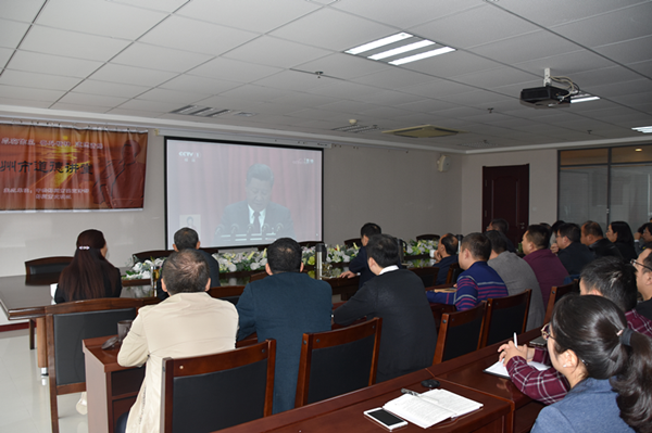 2017年10月18日上午9時,舉世矚目的中國共產(chǎn)黨第十九次全國代表大會在北京隆重開幕。集團公司黨委書記、董事長、總經(jīng)理秦廣遠同志帶領(lǐng)機關(guān)全體干部職工,各項目部、各下屬公司黨員干部共計80余人集中收看了中國共產(chǎn)黨第十九次全國代表大會開幕式,認真聆聽了習(xí)近平總書記代表十八屆中央委員會向大會作的報告。在近三個半小時的收看中,25樓會議室座無虛席,大家聚精會神,嚴肅認真,不時爆發(fā)出熱烈掌聲。