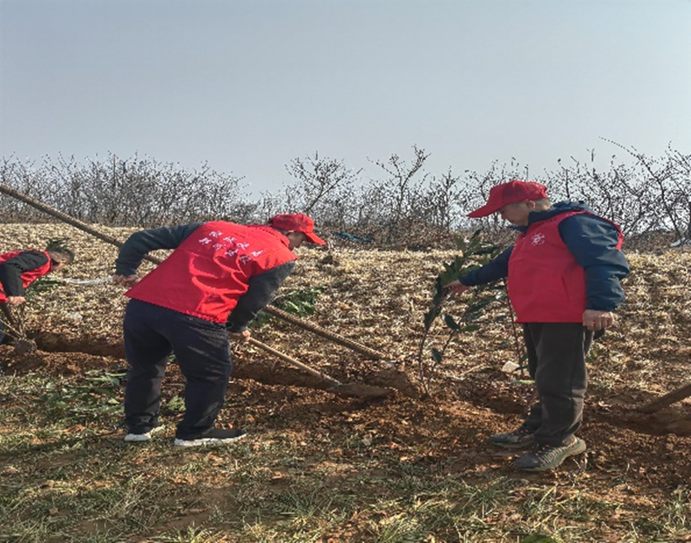 3月12日,陽光明媚,春意盎然,黨員志愿服務(wù)隊(duì)士氣高昂,手拿鐵鍬、水桶、掃把等工具,熱情高漲地投入到植樹活動中。