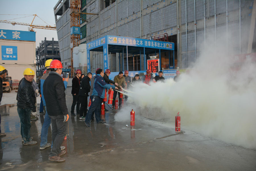 活動共分為三個部分。第一部分為安全生產(chǎn)培訓,通過觀看安全生產(chǎn)教育視頻資料、工程部經(jīng)理結合項目實際宣貫施工現(xiàn)場消防安全法律法規(guī)及總工對安全生產(chǎn)工作再部署、再強調(diào)、再落實等方式,開展了一期卓有成效的安全生產(chǎn)培訓活動;第二部分為辦公場所應急疏散演練,通過模擬項目部辦公區(qū)域發(fā)生火情,員工有序緊急疏散的方式,提高員工消防安全自救能力;第三部分為滅火實踐演練,在工地現(xiàn)場模擬火情,員工實際操作滅火器進行滅火,極大地增強了員工滅火動手能力。